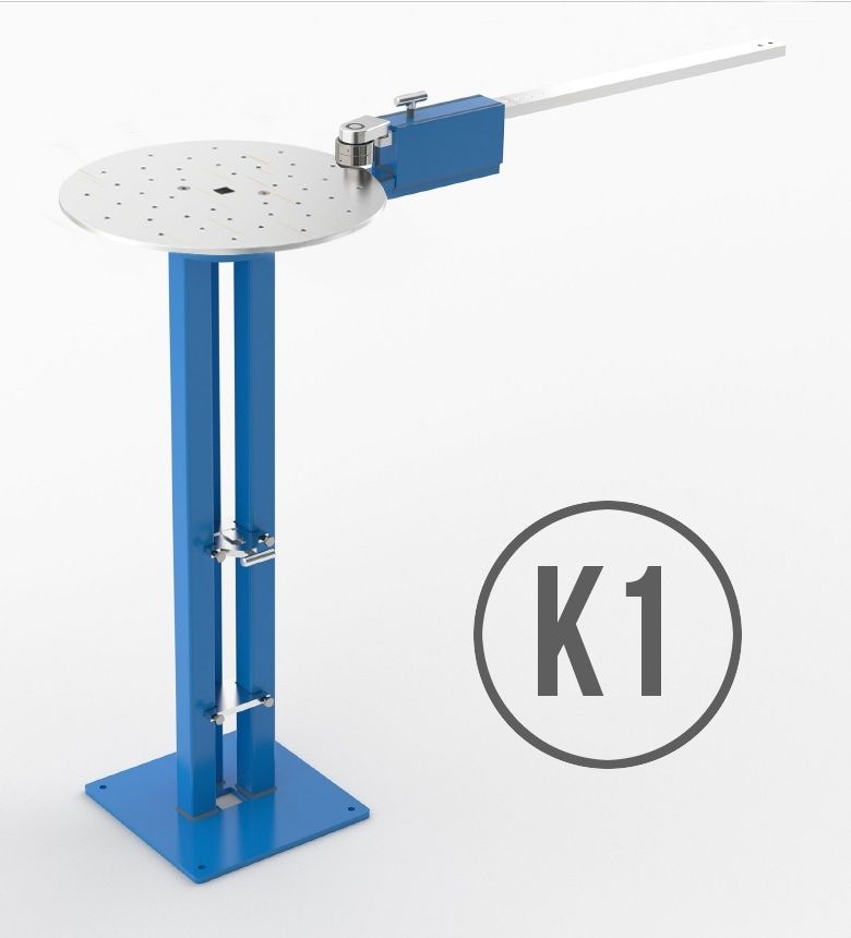 La cintreuse K1 se dresse sur une colonne à 3 barres sur lesquels se trouve un plateau rond doté d’une multitude de trous qui doivent accueillir les fixations des matrices. Pour les différents cintrages, la K1 est équipée d’un bras à double usage qu’il faut actionner en se déplaçant à pied dans un sens circulaire, il faut donc le retourner selon le cintrage ou le torsadage.